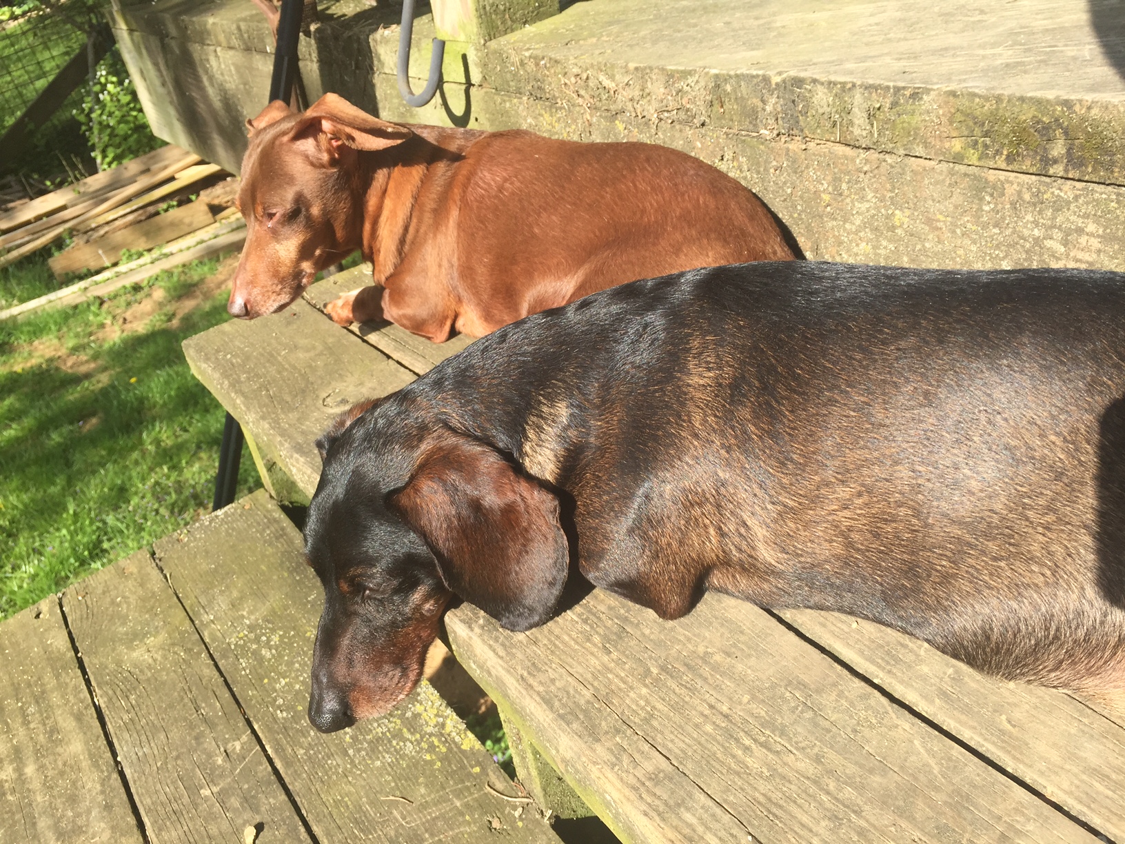 Hollywood, Rampage, and Lance are owned by VP of Operations Heather Michaelson. Hollywood, or Holly for short, is a Pitbull who is always full of energy. Rampage (red) and Lance (black) are miniature dachshunds who love to soak up the sunshine.
